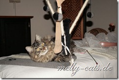 Hier ist alles in bester Ordnung. Aragon und Ellron sind zur Zeit außer Rand und Band. Sie toben und springen und spielen miteinander, das mir beim zusehen echt das Herz aufgeht. So hab ich Azrael und Aragon nur zu ihren jungen Zeiten kennengelernt. Vielleicht brauchte Aragon wirklich etwas länger, um wieder der Alte zu werden ;), es war ja auch alles ein bisschen viel für so eine kleine Katerseele. Erst verstirbt Azrael und dann wird ihm noch so ein Jungspunt einfach vor die Nase gesetzt. Er liebt es mich zu veräppeln und ständig zur Balkontüre zu gehen und sobald ich aufstehe und da bin, dann rennt er weg ;). Gerade hüpft er sogar seitlich vor Ellron rum um ihn zum spielen zu animieren