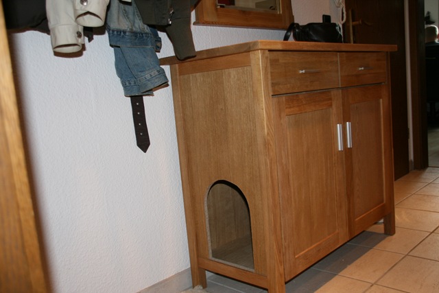 Wir haben vor 2 Tagen ein neues Katzenklo für unsere Mäuse gekauft. Jetzt ist es gut versteckt, keiner sieht es auf Anhieb und die Diele ist auch wieder fast Katzenstreufrei