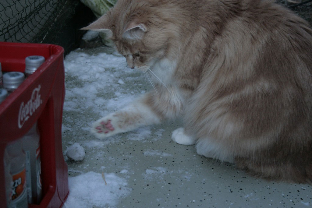 Wintereinbruch in Krefeld… -4°C lt. Radiowetterbericht haben wir sogar -9°C, ok wir sind auch in der 2. Etage :D, da ist es bekanntlich nicht so kalt. In Maine, wo die Coonies ja ihren Ursprung haben,  ist es bekanntlich ja noch um einiges kälter