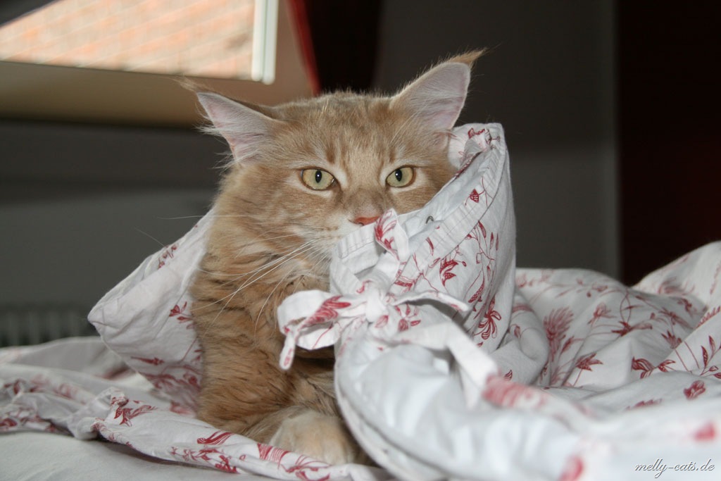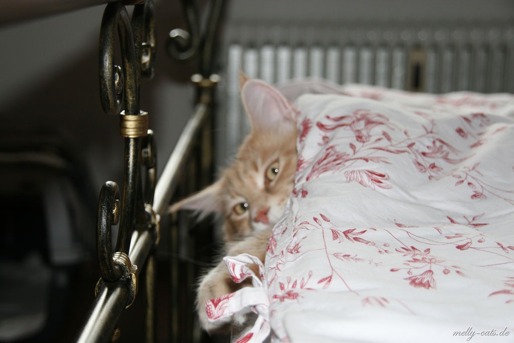 und sie legen sich auch noch freiwillig bei der Hitze unter die Bettdecke. Na, vielleicht ist es auch das Wasserbett, welches zur Zeit auf 26 Grad steht, und dort ist es doch recht kühl :-). Keine Ahnung, aber die Bilder hab ich eben gemacht…