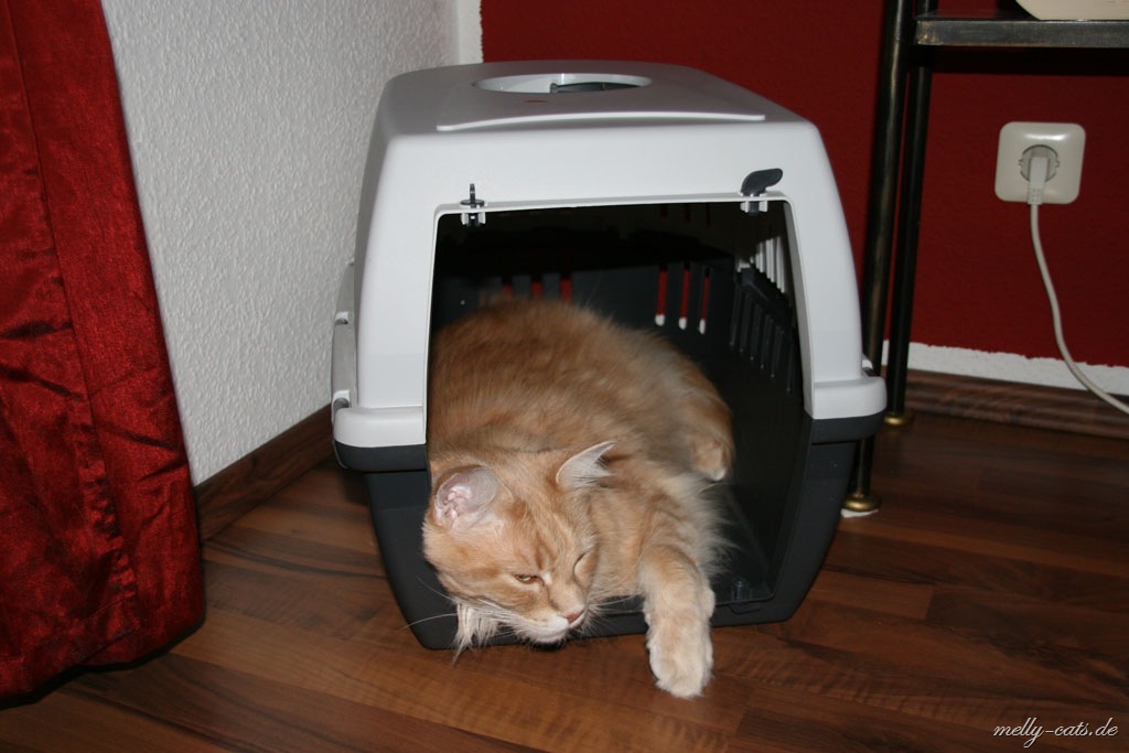 Und hier der Beweis, dass die beiden tatsächlich liebend gerne in den Transportboxen schlafen, wobei Azrael jeden Tag zum schlafen da hinein geht und Aragon es liebt seinen Bruder daraus zu vertreiben ;), jetzt hab ich im Schlafzimmer beide Boxen stehen, so gibt es wenigstens keinen Streit mehr