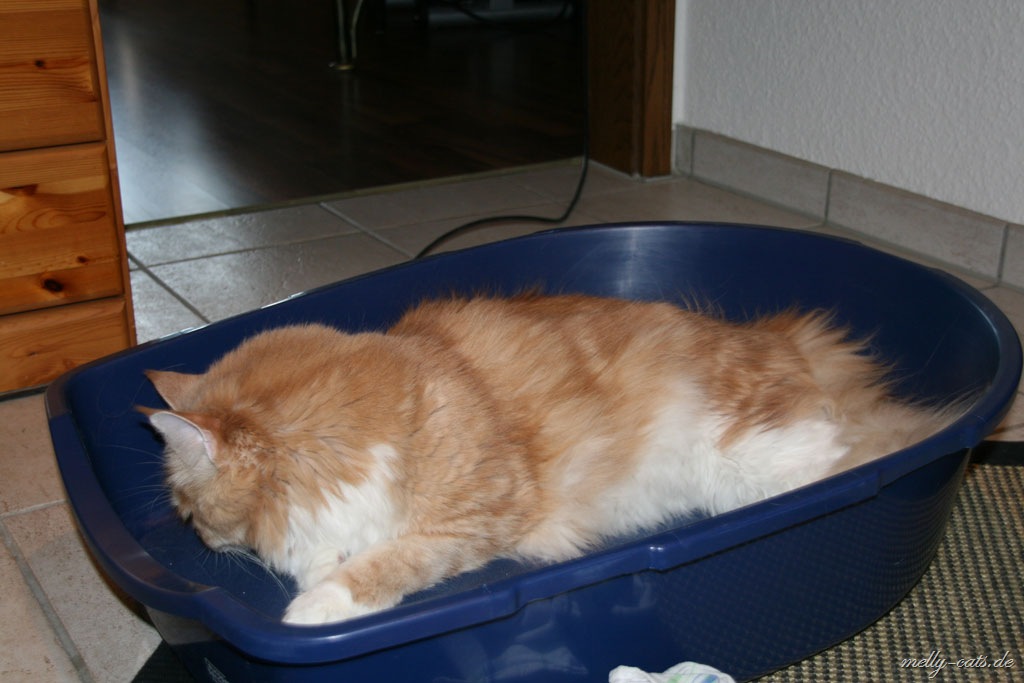 Unglaublich aber wahr. Immer wenn ich die Katzentoiletten sauber mache, dann wälzt sich Azrael in der leeren Schale und schnurrt was das Zeug hält. Ob er wohl den Geruch von Domestos liebt? Vielleicht eine Kindheitserinnerung
