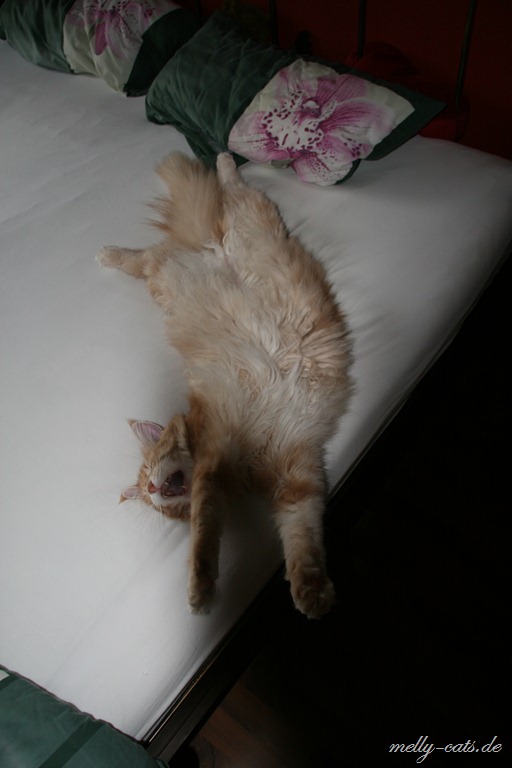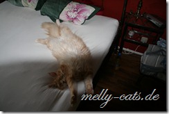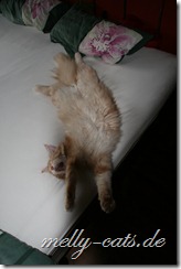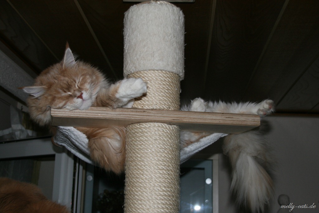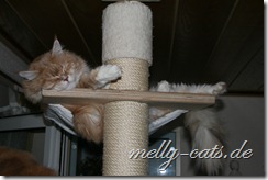 Azrael findet auch immer neue lustige Schlafpositionen. Er liegt im Kratzbaum und irgendwann fällt der Kopf aus der Hängematte runter. Das stört ihn aber weniger, auch wenn er sich dabei fast die Luft abschnürt. Ich hoffe ich bekomme auch davon noch ein Foto: