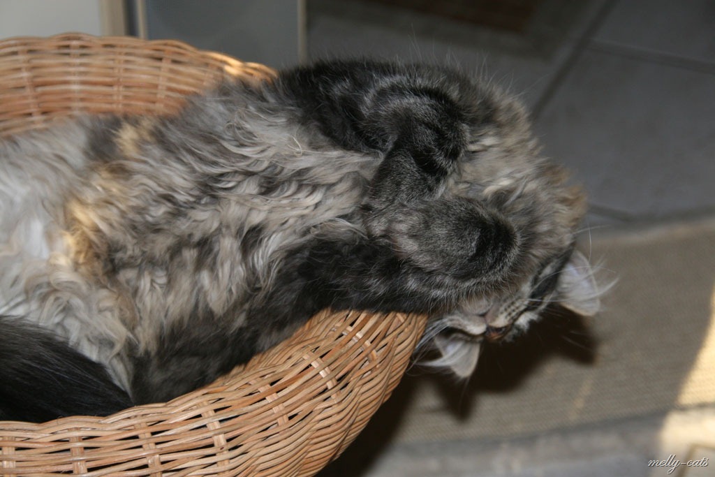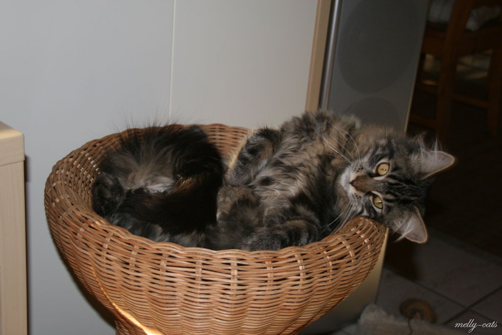 Nein, der alberte da drin rum ;). So komisch schläft dann doch keiner von den beiden ;) Obwohl ich das bei anderen Katzen auch schon auf Fotos gesehen habe.