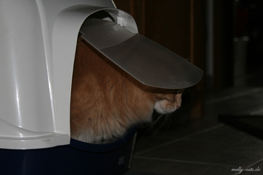 Wir haben 2 große Haubentoiletten, diese Jumbo XXl Klos, damit so ein großer fast 10 kg Kater da auch seinen Platz hat, obwohl es wohl immer noch zu klein ist „seufz“ , seht selber: