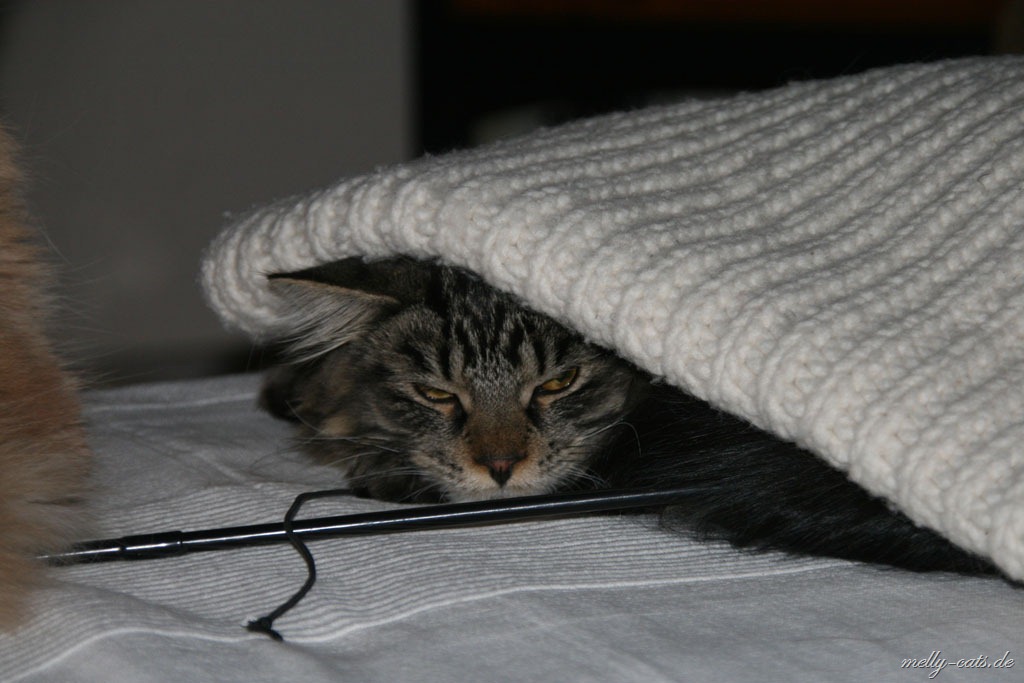 Während Ellron zur Zeit sehr kuschelbedürftig ist und es ja auch kühler geworden ist, sucht er sich wieder kuschelige Plätze: