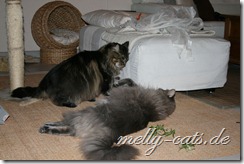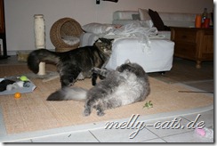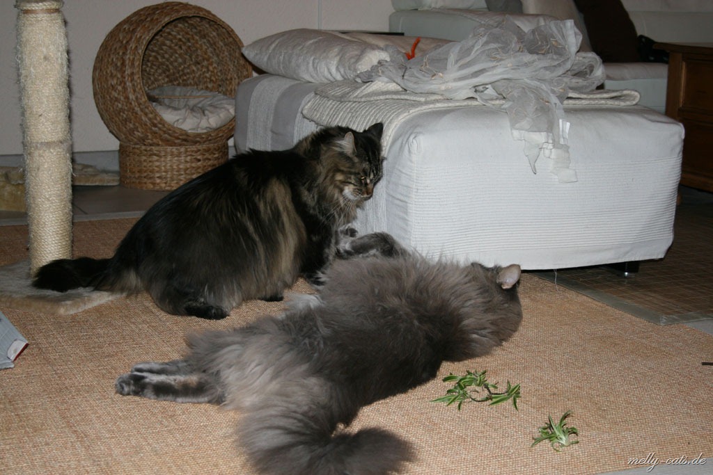 Warum soll das bei Euch besser laufen, wie bei uns – unser klauen alles was nicht niet u. nagelfest ist – und Cappu mittendrinn – gestern hat er Geld geklaut – weiß der Geier wo er das her hatte. Vermutlich hat ihm seine Komplizin „Eisfee“ mal wieder geholfen. Sie schuppt das unauffällig vom Schrank und er liest es dann auf und verschwindet mit der Beute. Die 2 als Taschendiebe auf dem Weihnachtsmarkt und wir wären reich