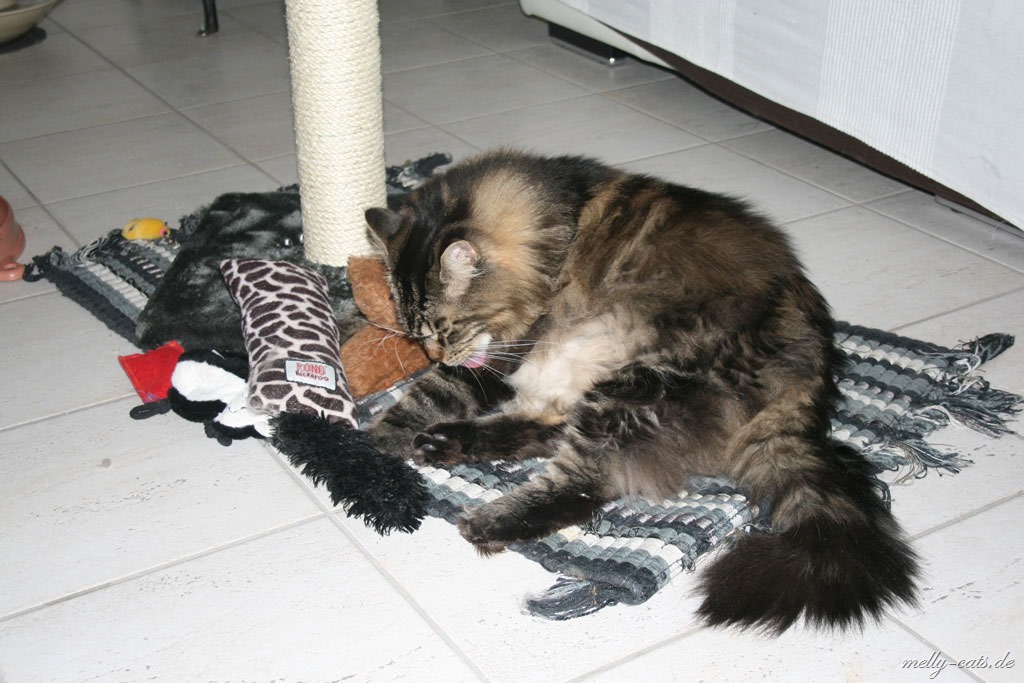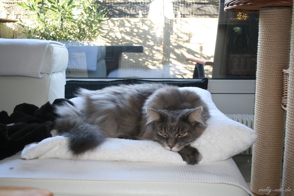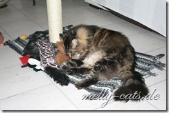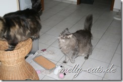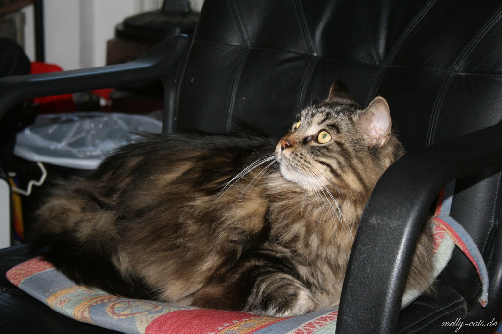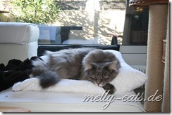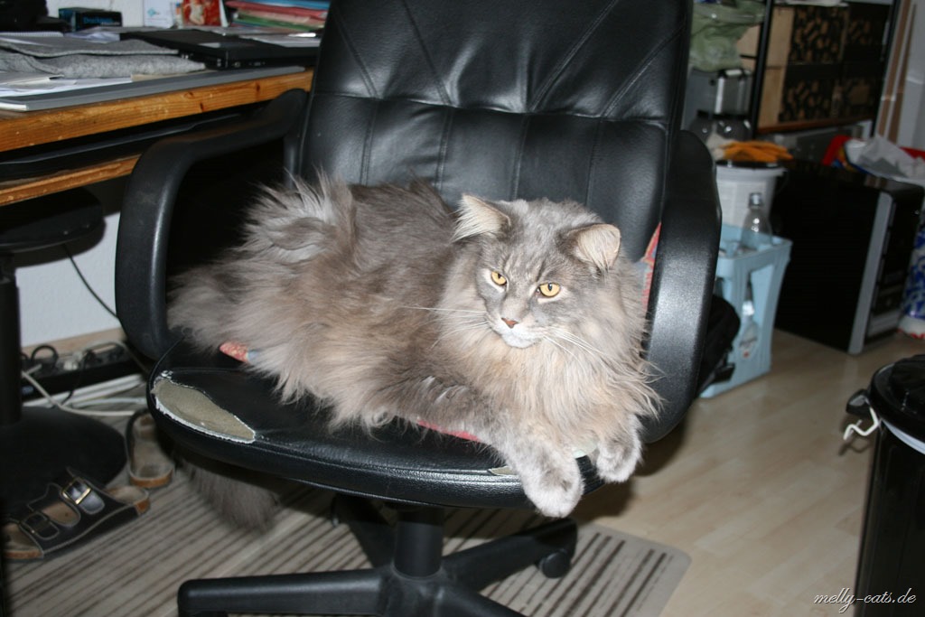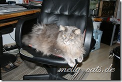 Die größte Eroberung haben sich die beiden gestern gegönnt, zuerst ist Carry auf den Chefsessel gesprungen und hat dort den ganzen Nachmittag geschlafen und heute Morgen meinte Ellron, dass er auch mal ein Recht habe auf diesem Platz zu liegen ;). Bis dato hat da immer nur Aragon gelegen, ist schnurrend um die Beine meines Mannes gelaufen, bis dieser sich erhoben hat und schwups lag Aragon auf dem Stuhl und hat sich den ganzen Nachmittag dort genüsslich krabbeln lassen ;).