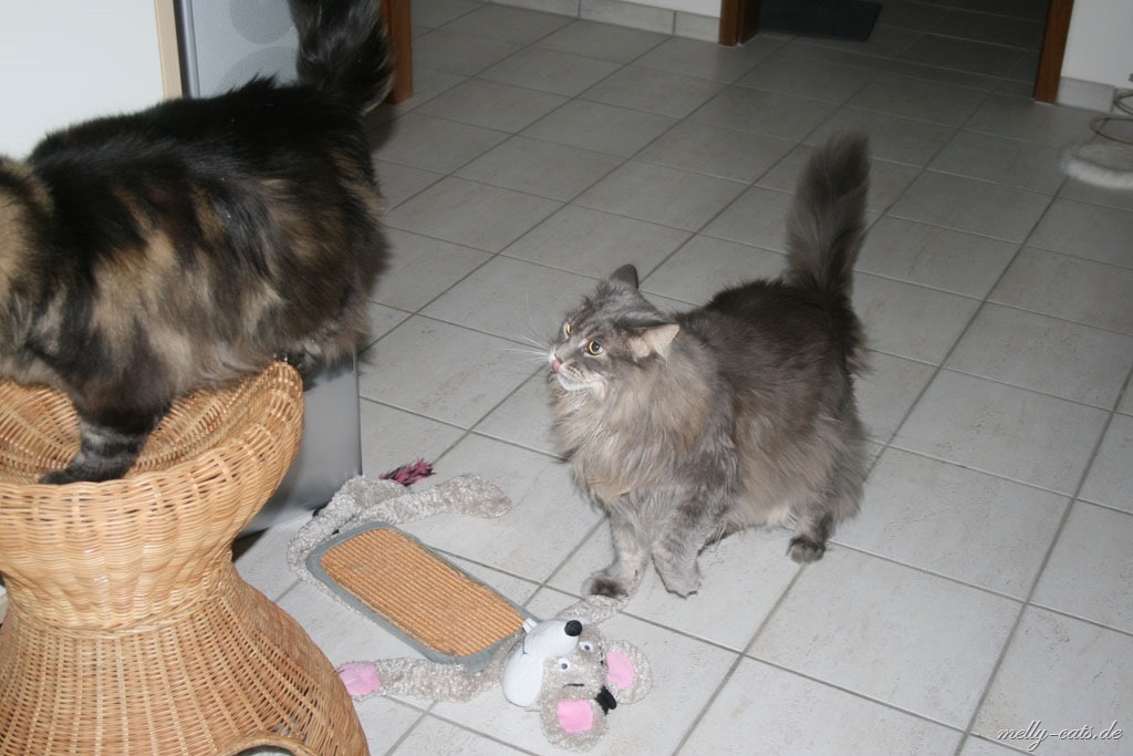 Da hast du wahrscheinlich Recht, sie sortieren sich neu, fauchen und prügeln sich gerade ein wenig und ich denke sie machen eine neue Rangordnung. Ist auch ok so ;-).