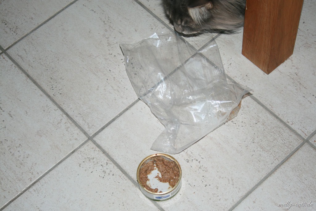 Über Nacht muss hier ein Dieb oder Einbrecher gewesen sein… die Rasselbande hat mir aber bis dato nicht verraten wer das gewesen ist. Ich tippe ja heimlich auf Dario ;). Aber das muss ich leise sagen,denn ich bin ja insgeheim froh, wenn der kleine Kerl mal was frisst ;).