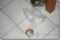 Inzwischen muss ich hier alles verrammeln und irgendwo hinpacken, wo die zwei Quatschkatzen nicht dran kommen. Selbst der riesen Pack Felix Trockenfutter der an Kitten & Friends geht, wurde schon getackert und sieht etwas löchrig aus.