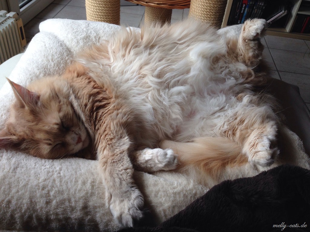 Carry mutiert zum Bettelheini, gerade noch gab es Futter, schon steht er wieder in der Küche und jammert einem die Ohren voll ;). Ich glaube, ich muss ihn mal auf einen Bandwurm untersuchen lassen ;). Wenn man nur von der Couch aufsteht, registriert er das und schwups, ist er als erster in der Küche. Unglaublich ;). Und wenn wir selber am Esstisch essen, dann kommt er mit den Pfoten an meine Schulter, stubst mich an und maunzt, so als wollte er sagen..und was ist mit mir? Dazu muss ich sage, er hat meistens 10 Minuten vorher selber Futter bekommen.  Carry hat am 08.03.2014 ebenfalls seinen Geburtstag gefeiert. Er wurde 6 Jahre.