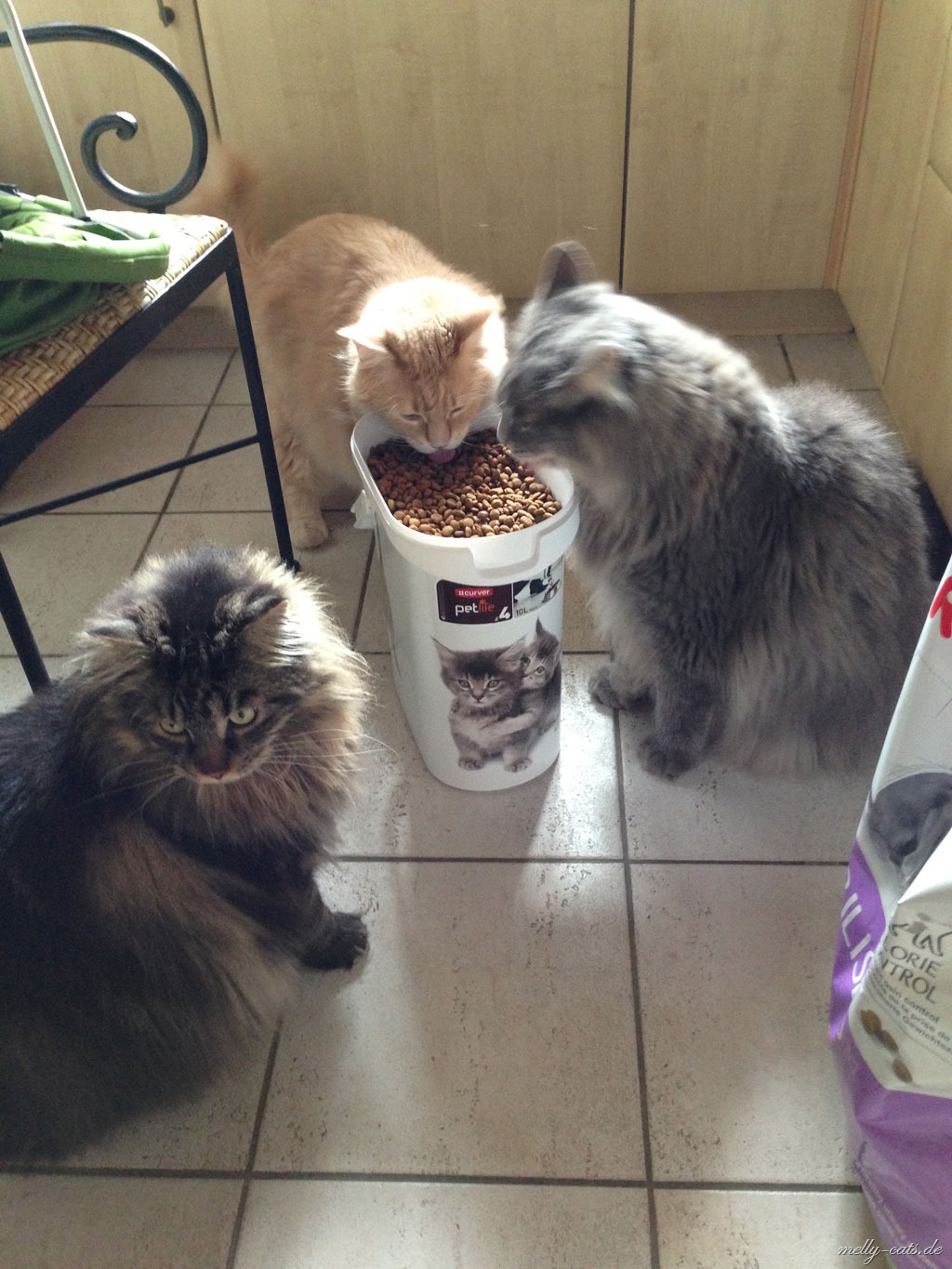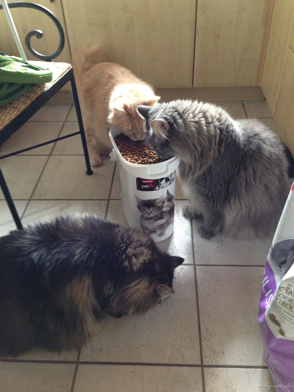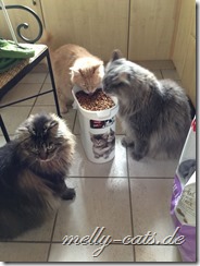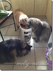 Wenn´s ums Futter geht, sind aber alle 3 immer als erste mit der Nase dabei und am liebsten direkt aus dem “großen Fressnapf”
