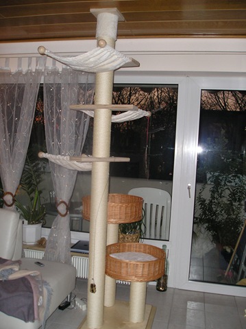 Und dann ist auch endlich unser neuer Kratzbaum angekommen. Habe schon sehnsüchtig darauf gewartet und nicht damit gerechnet, das er noch rechtzeitig da ist. Hier ist das Prachtexemplar: