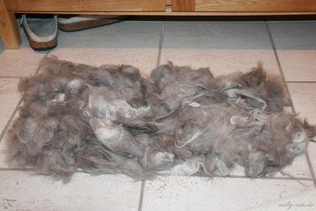 Erst mal ein Bild von der ganzen Wolle die runtergekommen ist, warum die mir die mitgegeben haben weiß ich zwar nicht, aber zum fotografieren war´s dann ja doch gut