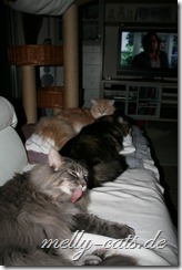 Das kleine Problem Katzenklo haben sich auch von selber gelöst. Am Dienstagmorgen hat Lutz Carry Ewigkeiten gesucht und nicht gefunden. Wer kommt auch schon auf den Gedanken, das der Katermann sich ins Katzenklo mit Klappe reingelegt hat… Tja, Abends hab ich es dann einfach mal ausprobiert und auf beide Klos die Klappe befestigt. Und was soll ich sagen, es klappt bestens