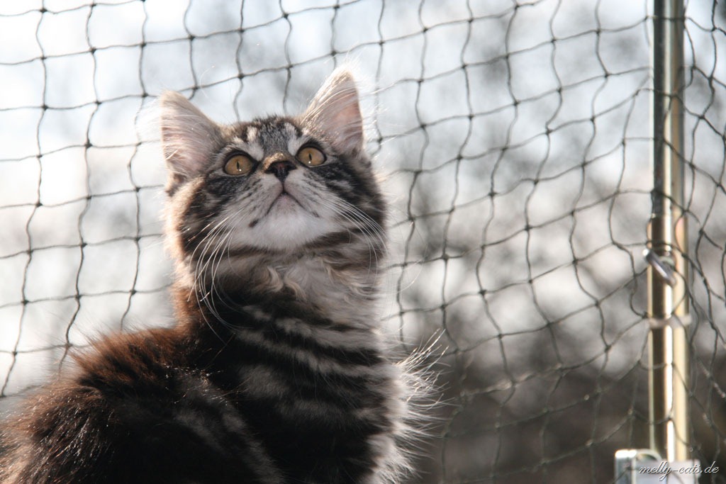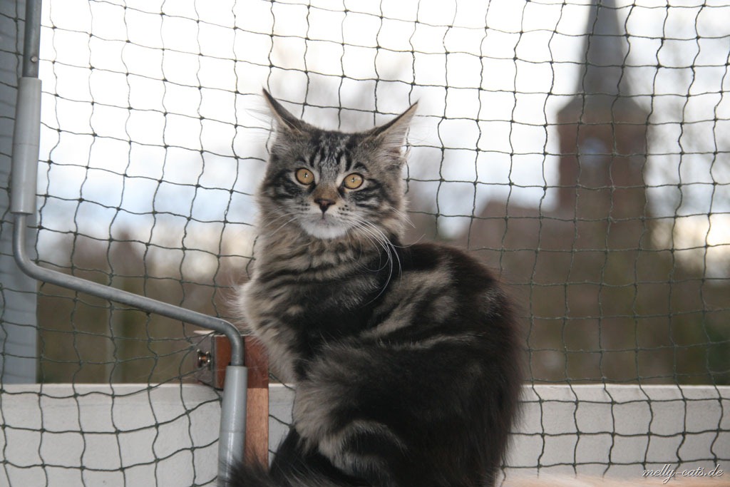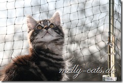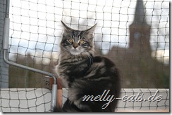 Ellron hat nur Flausen im Kopf. Er schafft es sogar, das Katzennetz auf dem Balon hochzukraxeln :(. Sehr zu meinem Leidwesen, da Aragon und Azrael das noch nie gemacht haben und ich jetzt mit ihm einen kleinen Machtkampf ausfechte und er nur noch nach draussen darf, wenn ich dabei bin. Mein ständiger Begleiter während dieser Zeiten ist die Wasserspritze ;).