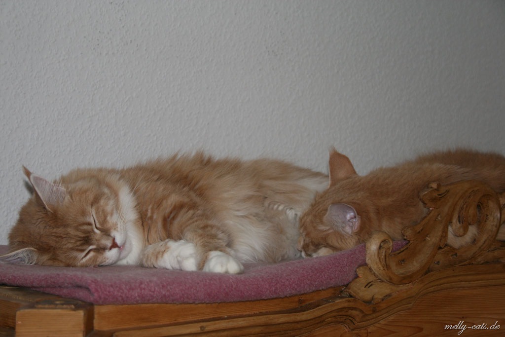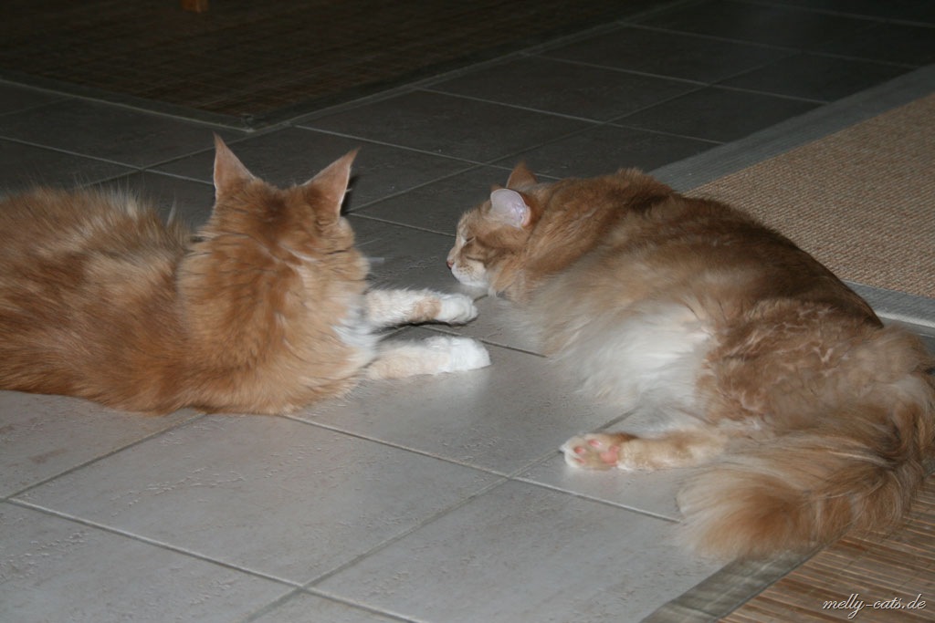 So, das Ganze ging über ne halbe Stunde. Aragon liegt jetzt völlig kaputt in seinem Kratzbaum und erholt sich von seinem Kampf. Er hat die Decke im übrigen so gut vor seinem Bruder verteidigt, dass dieser sich zur Zeit nicht in die Nähe dieser wagt