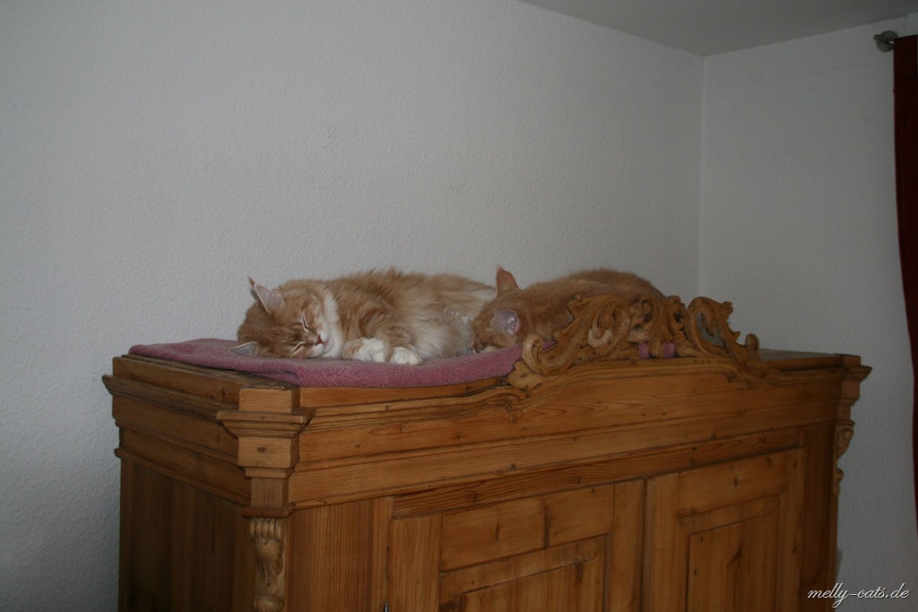 Unser Schlafzimmerschrank ist der neue Lieblingsplatz der beiden:
