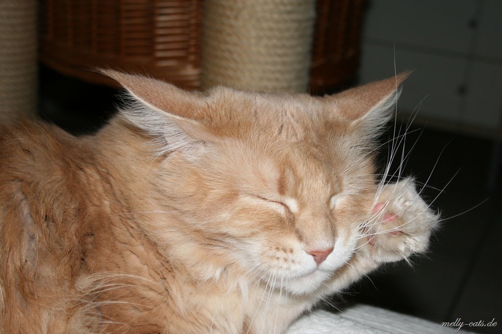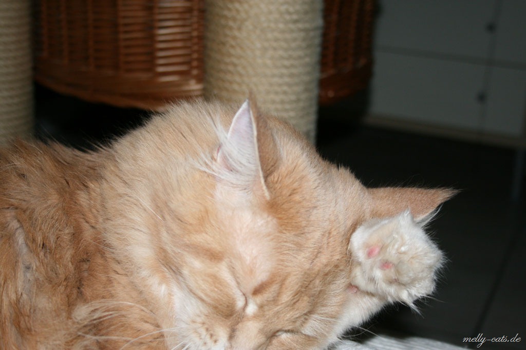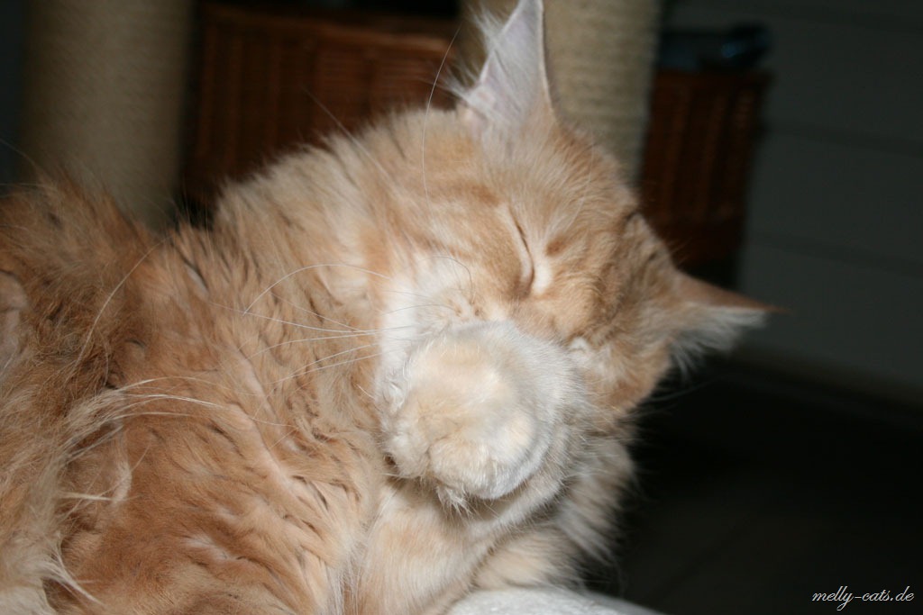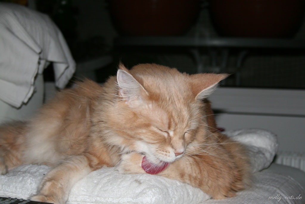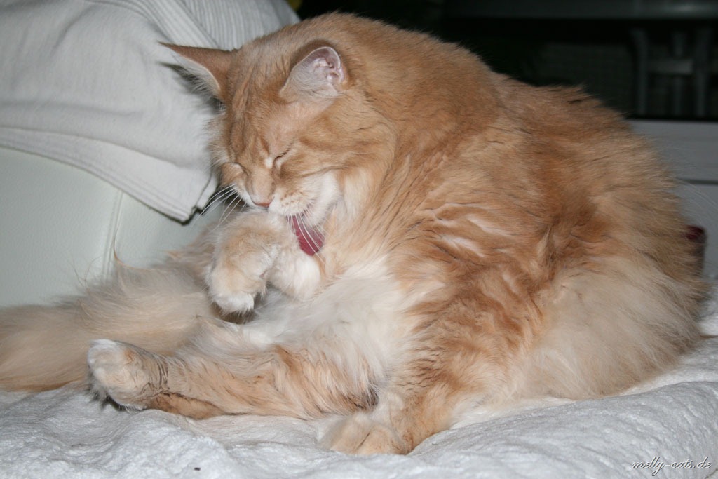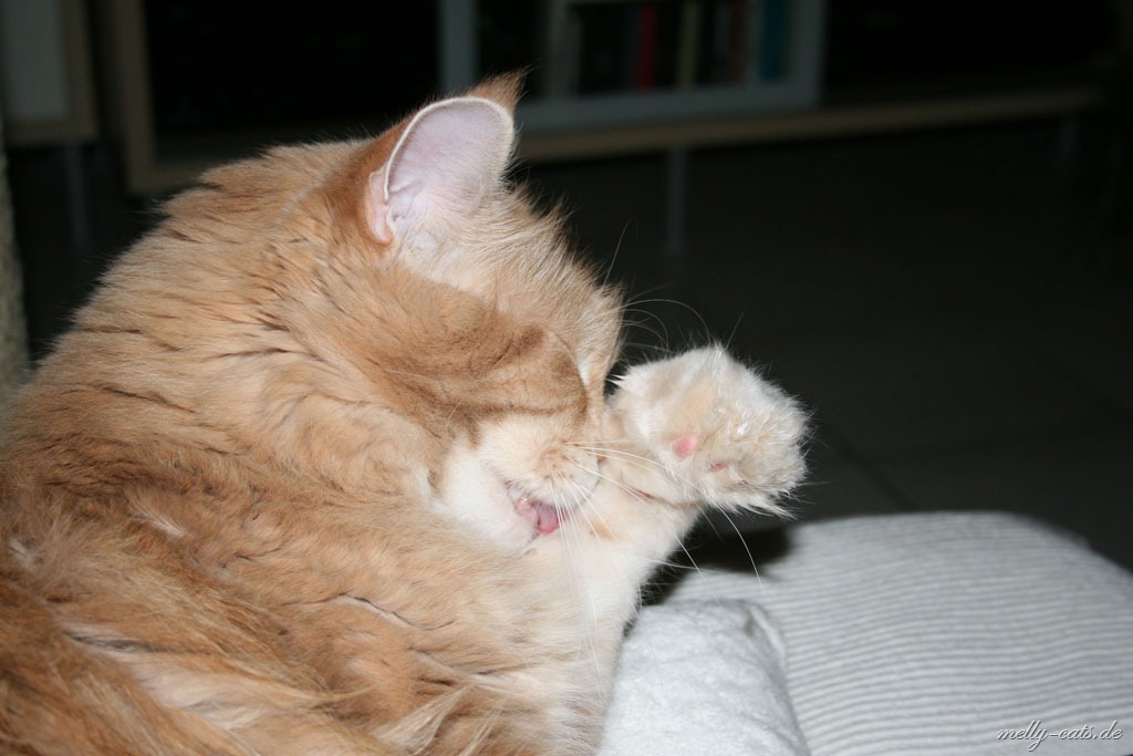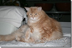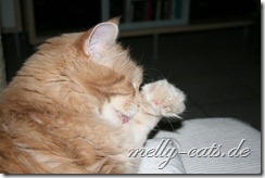 Leider muss Carry Morgen Früh zum Tierarzt und wird unter Narkose geschoren :(. Ich finde es total blöd, aber er hat soooo viele Knoten und Verfilzungen, das ich es alleine nicht schaffe. Er lässt mich auch nur an den Stellen bürsten, an denen keine Knoten sind. Sobald ich an einen Knoten rankomme wird mit der Pfote nach mir geschlagen oder er will beissen :(. Über das restliche Fell, wo keine Knoten sind, kann ich ihn wunderbar bürsten. Ich hoffe ja ganz dolle, das wenn er geschoren worden ist, das er sich dann wieder schön bürsten lassen wird.
