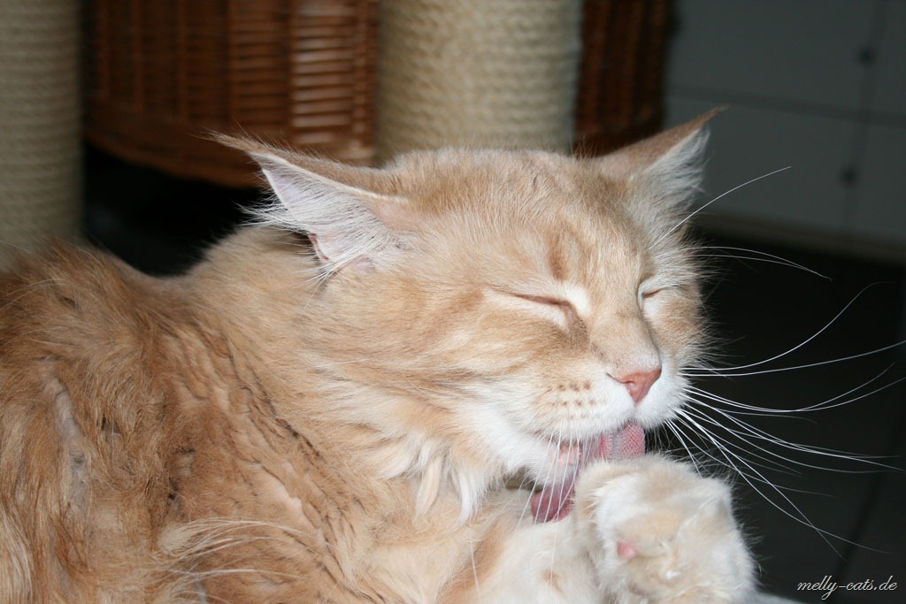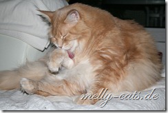 Bei Ellron klappt es ja mittlerweile auch sehr gut und bei Aragon brauchte ich mir bisher noch nie Gedanken zu machen, er sieht die Bürste und schmeisst sich auf den Rücken und fängt zu schnurren an ;). Warum können nicht alle Katzen so sein?