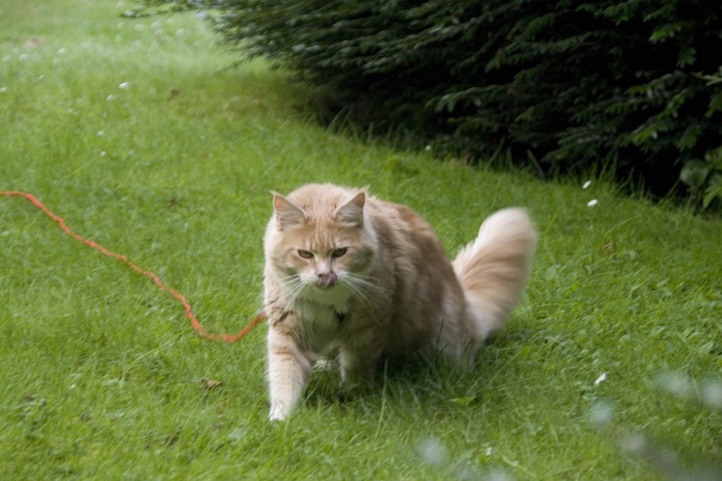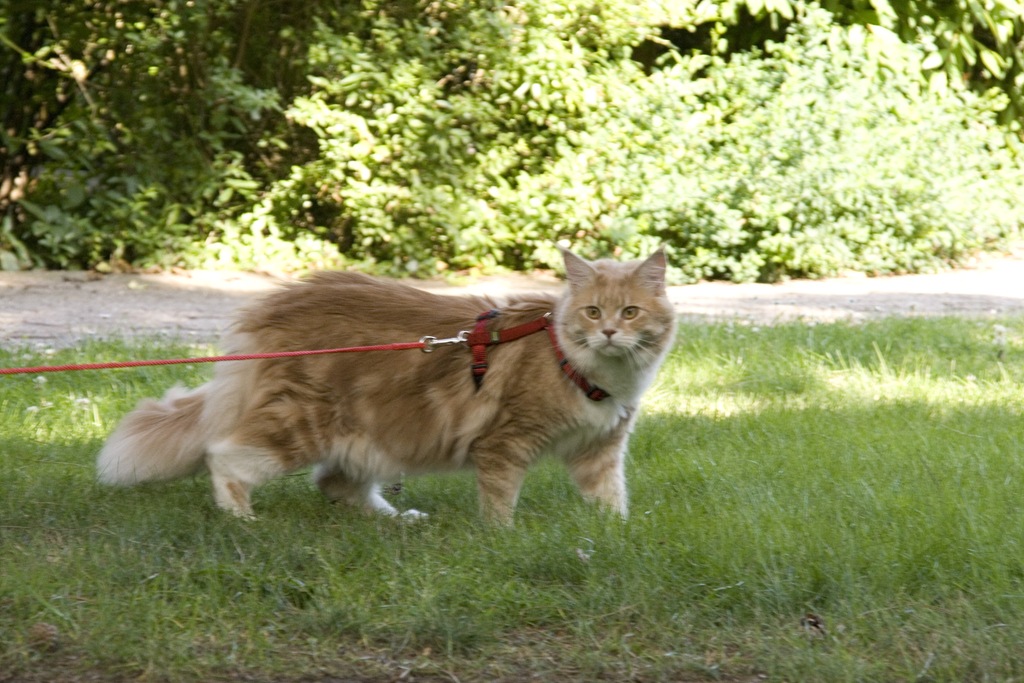 Als erstes hab ich mir ein Katzengeschirr gekauft, welches ich aber nach kurzer Zeit schon gegen ein kleines Hundegeschirr tauschen mußte