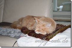 Nee wirklich, an manchen Tagen rennen und toben die durch die Gegend wie verrückt und immer wenn ich sie dann anspreche dann gurren sie so lustig vor sich hin und springen wieder weg und rennen weiter durch die Wohnung. Ich weiß gar nicht, ob es eine Coonie-Angewohnheit ist, dieses gurren. Hört sich auf jeden Fall total genial an. Von meinen beiden Sternenkatzen Gismo und Kira kenn ich es überhaupt nicht.