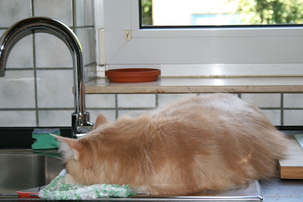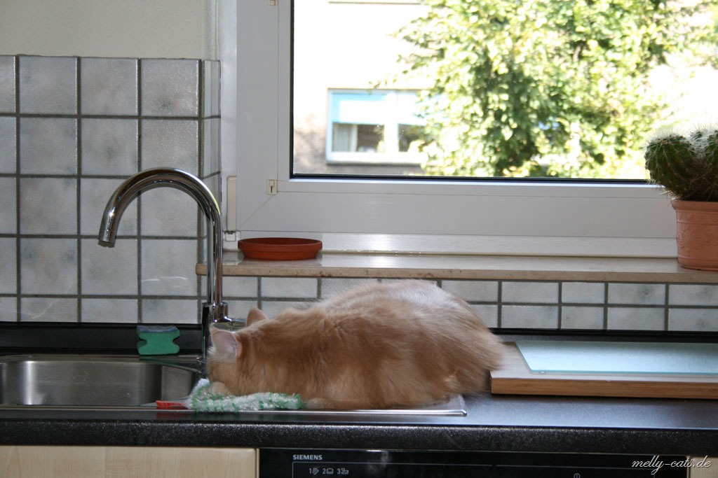 Während Aragon zur Zeit am liebesten im Arbeitszimmer meines Mannes auf seinem Stuhl sitzt. Diese Angewohnheit hat er, seit dem Azrael gestorben ist. Am Anfang fand mein Mann es ja lustig, das er immer auf seinem Stuhl liegen wollte (obwohl so schlimm kann es nicht sein, denn mein Mann nimmt sich immer freiwillig das Höckerchen und sitzt dann dort, obwohl der Hocker sehr unbequem ist). Jetzt hat Aragon auch schon eine Strategie entwickelt, um sich seinen Lieblingsplatz zu ergattern