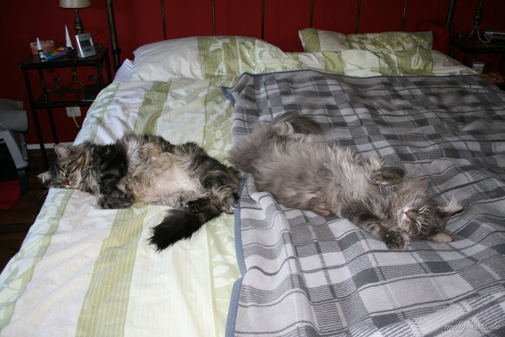 Zur Zeit ist ein kleiner Machtkampf zwischen den beiden ausgebrochen. Dieser macht sich dadurch bemerkbar, das wenn Aragon z.B. auf dem Balkontisch sitzt und Ellron ebenfalls dort raufspringt, wird Ellron von Aragon heftigst angefaucht und vertrieben. So nach dem Motto“ Das ist mein Platz, hier hast Du nichts zu suchen“. Aber wenn Ellron schon oben drauf sitzt und Aragon dann später auch darauf springt, ist Ruhe. Ich glaube Aragon versucht ihm gerade mal beizubringen, wer hier das Katersagen im Hause hat