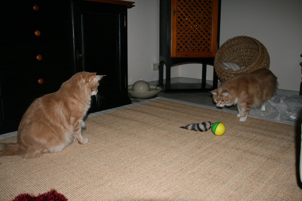 Wir haben ja im Maine Coon-Forum gewichtelt. Gestern durften die beiden das Geschenk dann endlich auspacken: