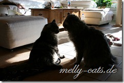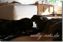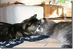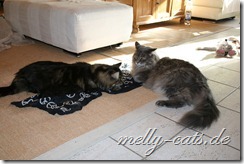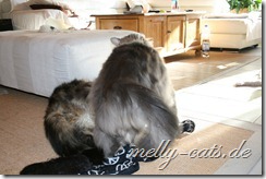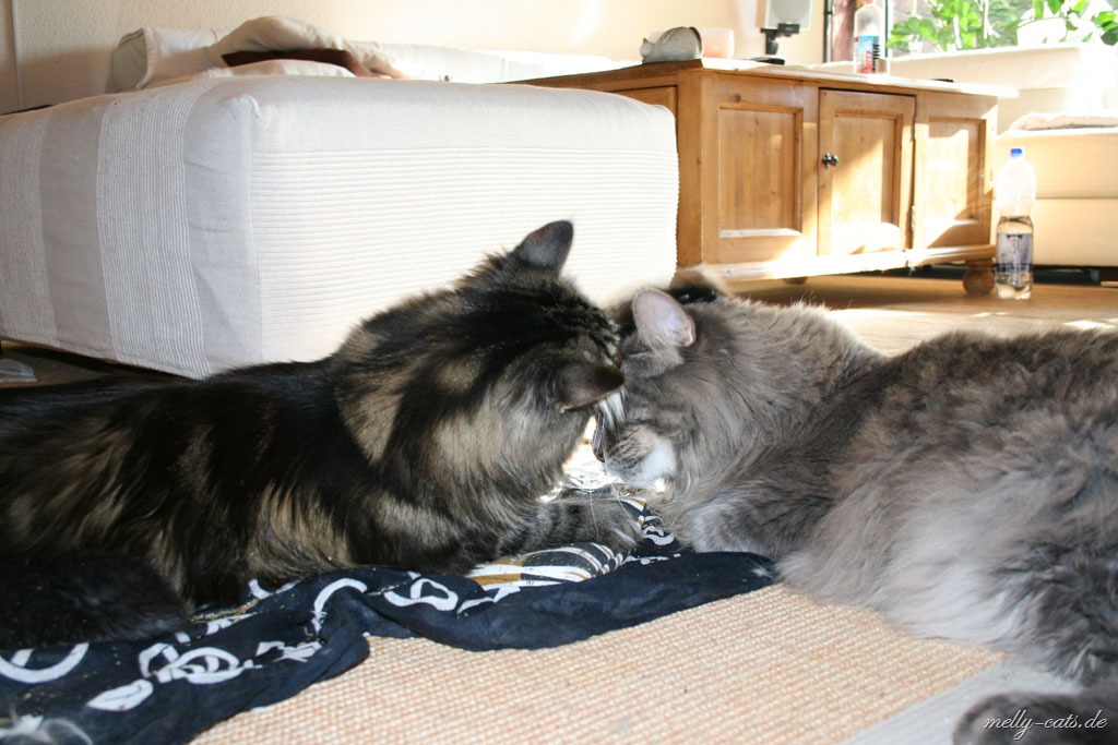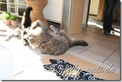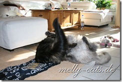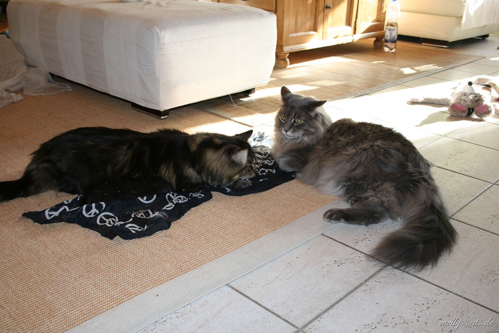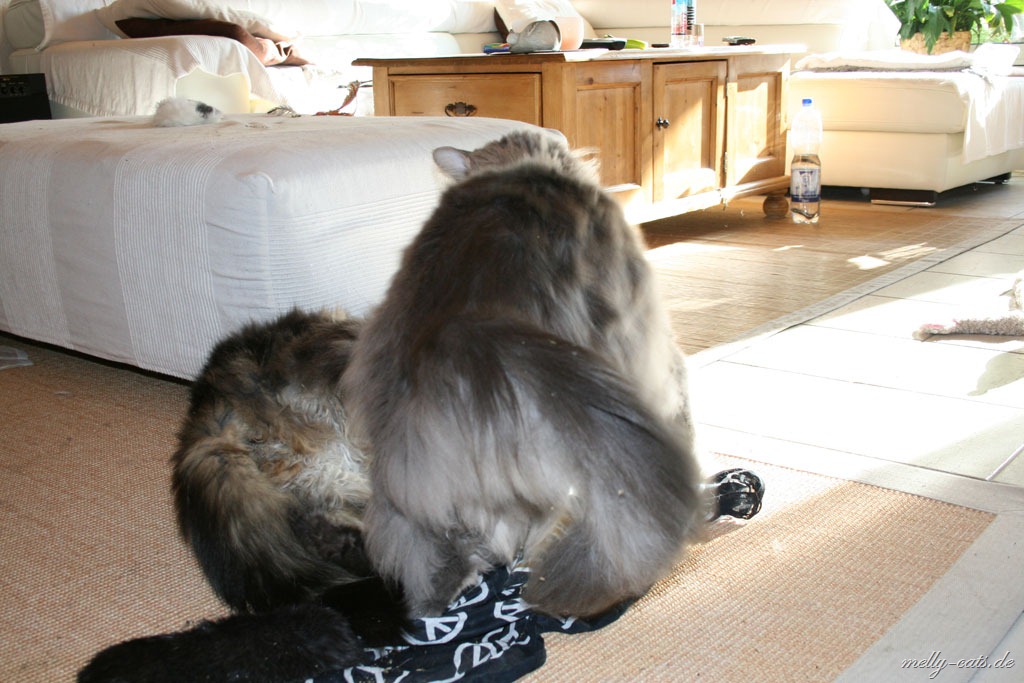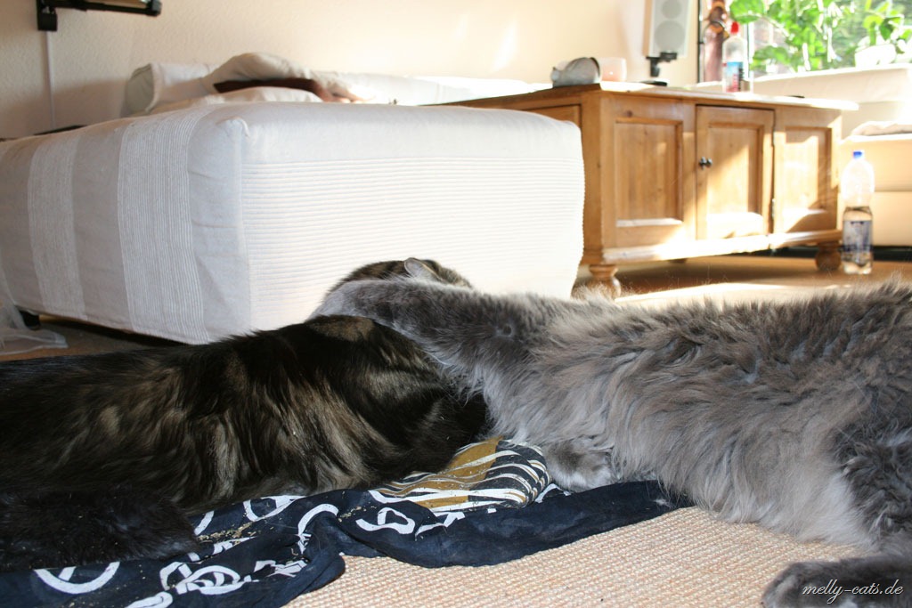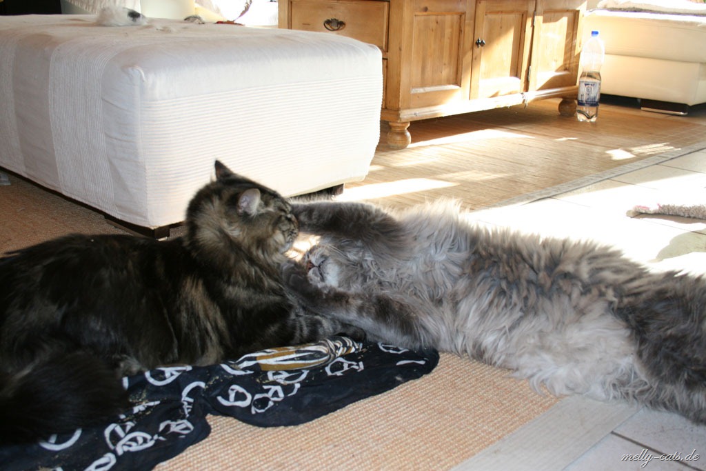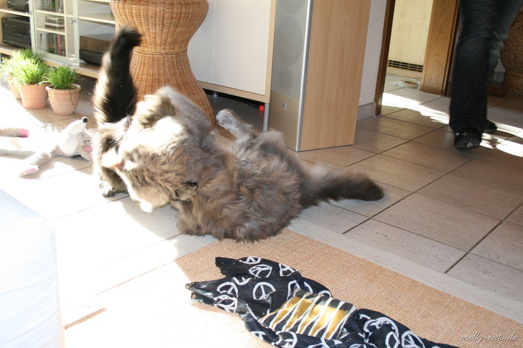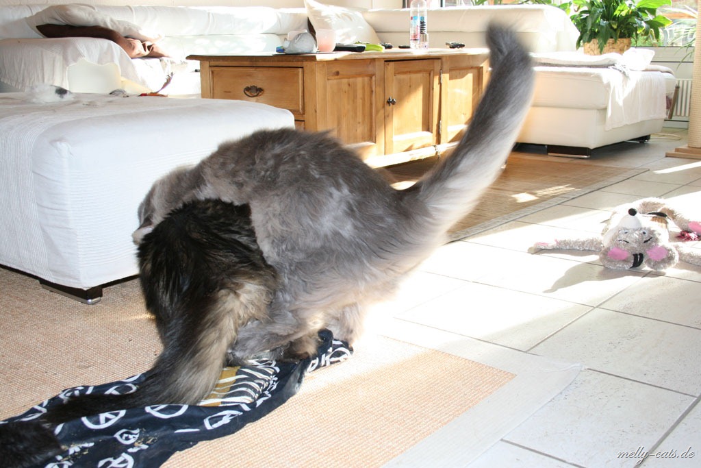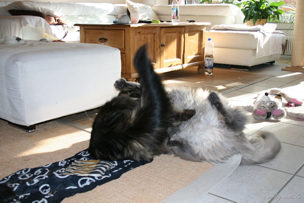Hier mal der Versuch ein kleines Video der Drei zu machen. Leider lässt die Qualität wieder zu wünschen übrig, da wir leider nie genug Licht in der Wohnung haben :(. Aber man kann doch erkennen, das sich Carry sichtlich wohl fühlt beim spielen mit dem Da Bird
