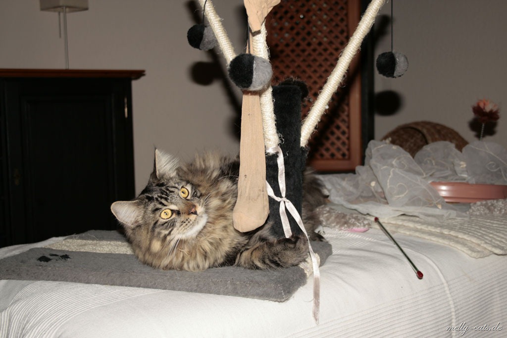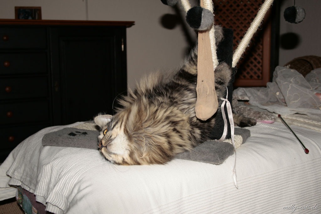 Ellron wächst und gedeiht und wird immer hübscher. Er bekommt ganz schön dolle Schneeschuhe und ich möchte nicht wissen, wie lang die werden, wenn sie fertig sind. Ein kleines Problemchen hab ich jedoch mit ihm. Er lässt sich sehr ungerne bürsten und somit haben wir immer wieder Knoten unter dem Bauch. Eine ganze Zeit lang ließ er sich Abends im Bett bürsten und dann konnte ich auch die Knoten wegschneiden, zur Zeit meint der Herr aber, das wäre auch doof. Mhhh, mal schauen, wie es in den nächsten Wochen aussieht.