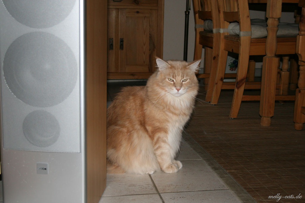 Das ist Aragon Lieblingsplatz, er könnte ja verpassen, wenn es was zu futtern gibt (Dahinter ist der Kücheneingang