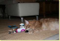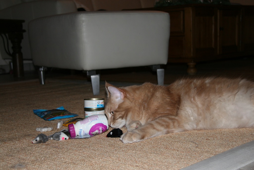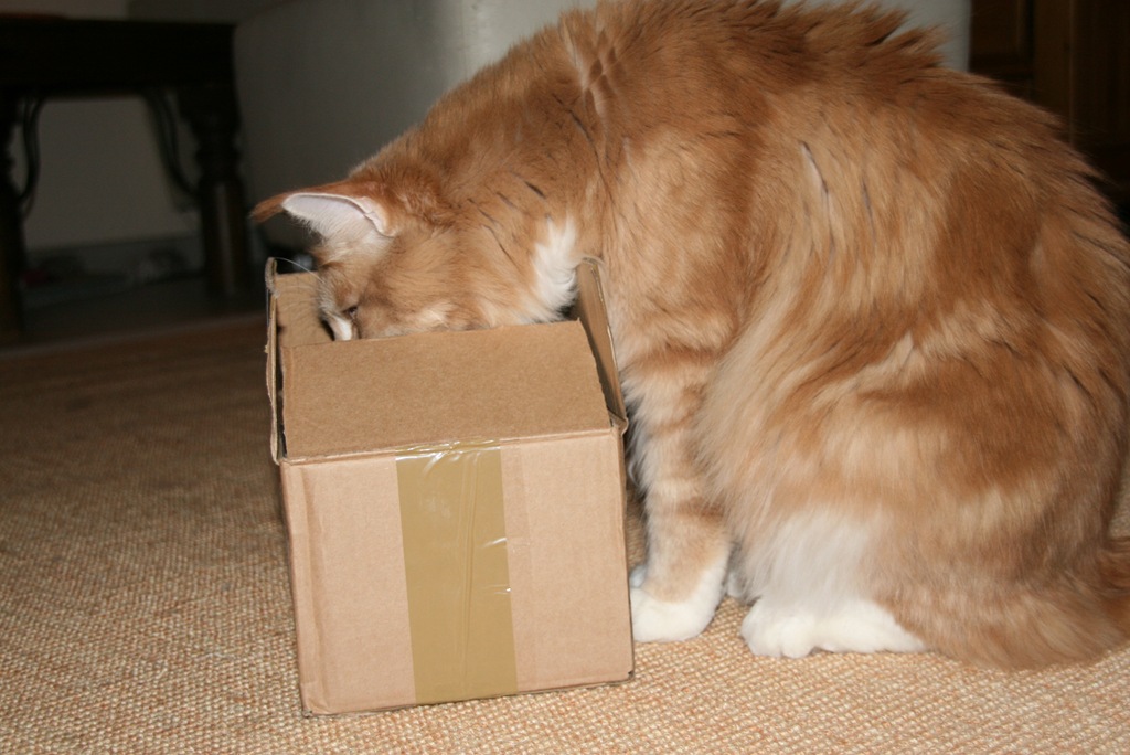 Der kleine Kater ist ja vor nichts ängstlich, aber das gerade eine einfach, schnöde Papiertüte dieses Katergemüt erschüttern könnte, hätte ich nicht gedacht ;). Doch schon, eigentlich weiß ich ja, wie gefährlich Henkel an Tüten für Katzen werden können. Aber hier mal die kleine Geschichte: