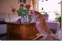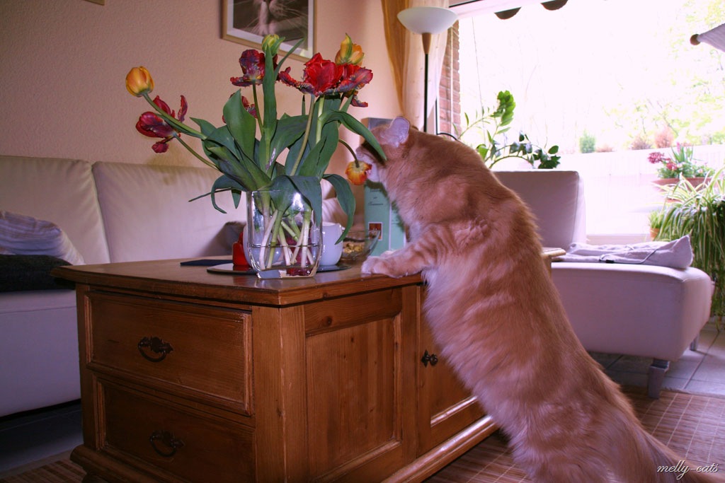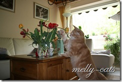 hier ist soweit alles in bester Ordnung und ich hoffe ihr habt alle diesen heißesten Tag gut überstanden. Die Mäuse sind bei der Hitze recht faul und liegen die meiste Zeit nur rum. Außer wenn es dunkel wird, dann turnen sie auf dem Balkon rum und jagen Motten, Mücken etc. Gestern ist bei der jagt einer Fliege mal wieder durch Aragon ein Blumentopf zerdeppert worden. Zum Glück kann mein Mann den wieder kleben. Schade das keine Haftpflichtversicherung für Katzen gibt ;). Aber sei`s drum, die Versicherung würde arm an uns werden und wir an denen, weil wir dann die erhöhten Beiträge irgendwann nicht mehr zahlen könnten ;).