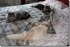 Wie ich zu den Melly-Cats gestoßen bin fragt ihr euch jetzt sicherlich….Tja, das ist eine traurige Geschischte :(. Meine Vorbesitzer mussten mich und meine Kumpeline Celeste, ja genau, sie ist Carry´s Schwester, leider nach 6 Jahren wieder abgeben. Ich kann euch gar nicht sagen, wie traurig ich darüber war. Besonders hatte ich mich mit meinem kleinen Herzchen komplett in die Tochter verliebt und wir waren ein Herz und eine Seele. Zum Glück sind wir zurück zu unserer Züchterin gekommen. Und dann kam die Dosi von den Melly-Cats ins Spiel. Die Züchterin erzählte ihr von mir und meinte, ich würde wunderbar in die Truppe passen. Das Dosinchen von den Melly-Cats leidet immer noch sehr an dem Verlust von ihrem geliebten Kater Aragon und auch Carry und Ellron haben den Verlust noch nicht so ganz verknusert, wie mir gesagt wurde.