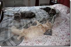 Außer das die beiden neuen Kumpels mich ein wenig anfauchen und knurren, was aber schon viel weniger geworden ist, ist es bei den Melly-Cats richtig toll. Ich darf auf den Balkon (ja, sogar ohne das ich nach ein paar Minuten wieder rein muss).
