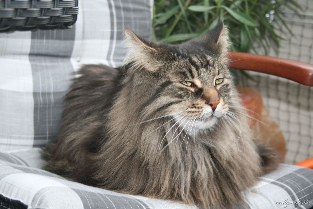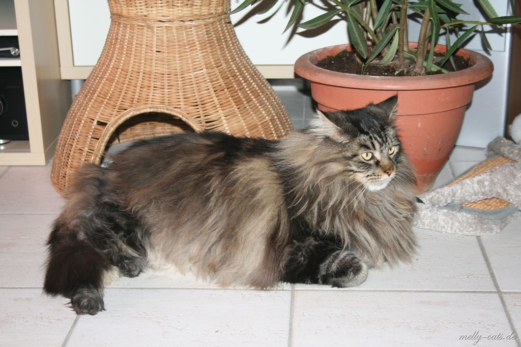 Ich bin Dario von den Lake Latums Maine Coons und bin seit 5 Tagen bei den Melly-Cats. Ich bin zwar "schon" 6 Jahre alt,aber meine Dosi meint, damit komplettiere ich das Duo perfekt. Da meine neuen Kumpels Carry 7 Jahre alt ist und Ellron ist 5 Jahre…Carry ist auch seinem Alter entsprechend ganz schön grau ;).