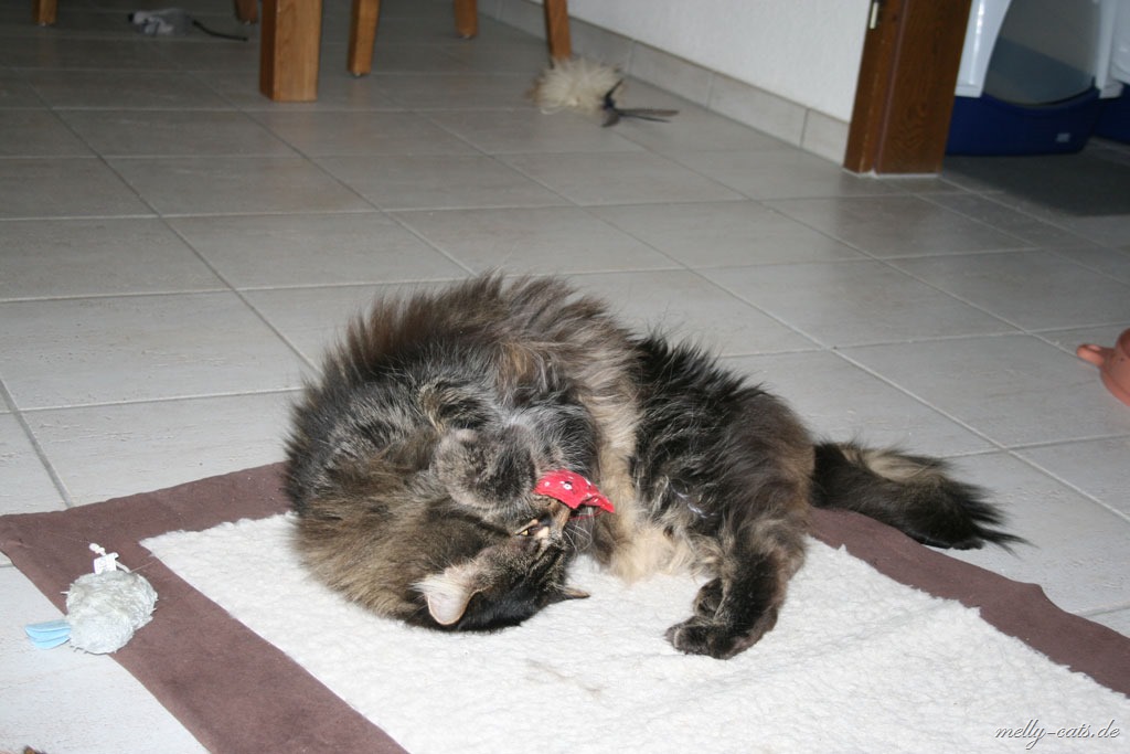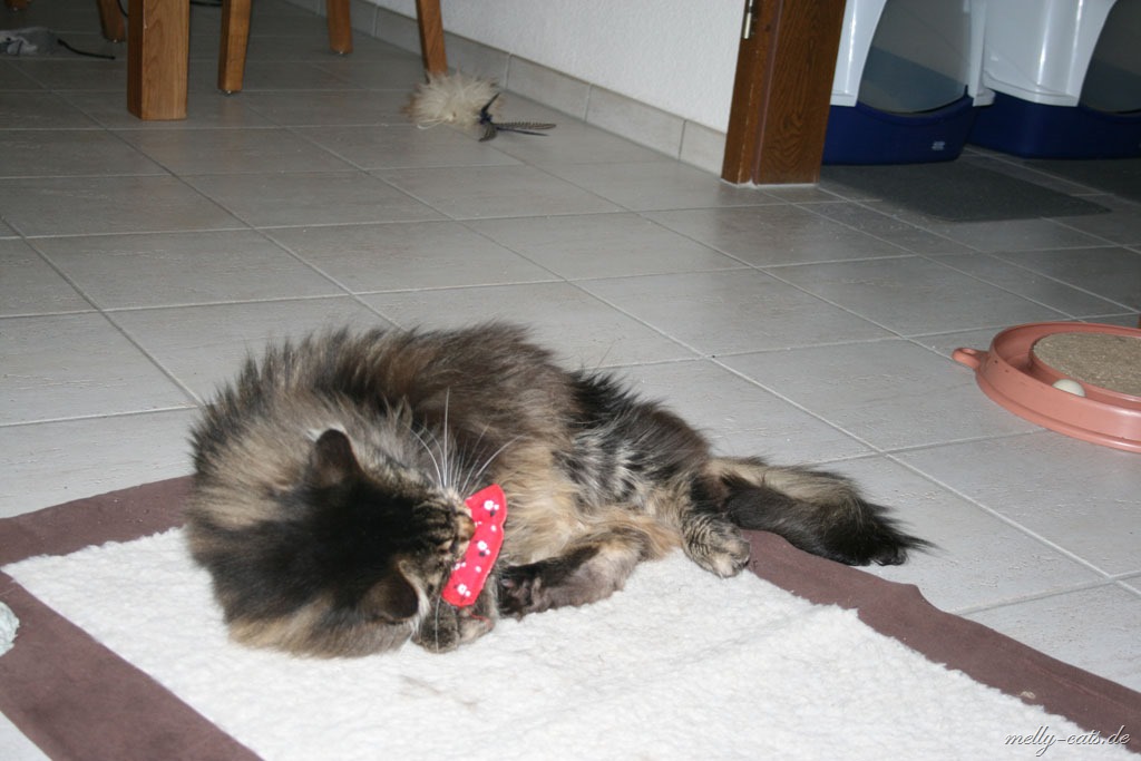 Hey, kennt ihr eigentlich schon mein neues Lieblingsspielzeug? Ich muss echt sagen, seit ich bei den Melly-Cats eingezogen bin, spiele ich fast Tag und Nacht damit. OK, ich gebe zu, dass ich mich beim spielen auch noch ein wenig verstelle